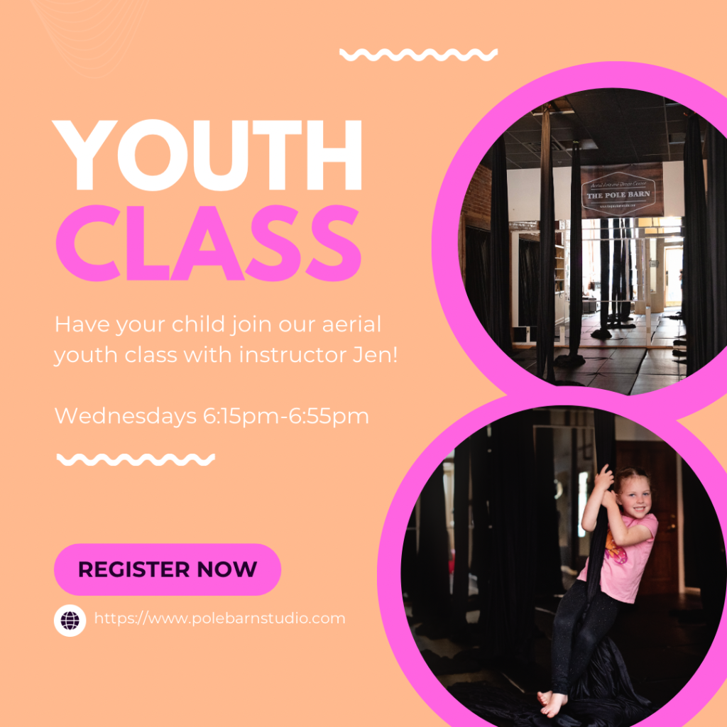 Most of our classes (with the exception of Pole) are designed for 14+ years of age, and participants under 18 must have their parent register them and sign a waiver. Pole classes are limited to 18+. We do have youth aerial silks classes, which include age 6-13.